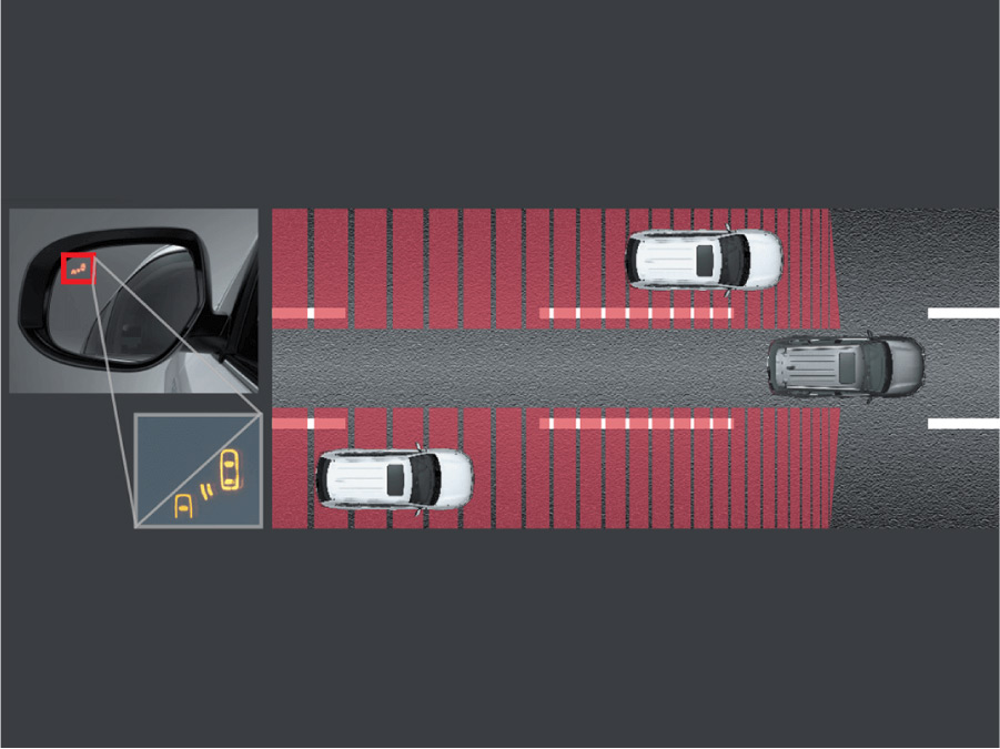 Nhận diện phương tiện trong vùng điểm mù, cảnh báo trên gương chiếu hậu và hỗ trợ cho người lái chuyển làn an toàn. (Chỉ có ở phiên bản 2.0 CVT Premium)
