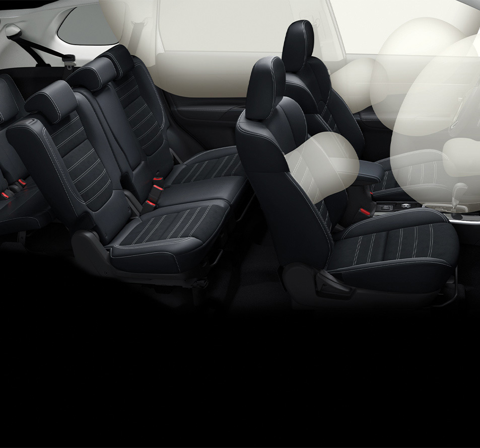 Trong trường hợp xảy ra va chạm, hệ thống 7 túi khí an toàn sẽ bảo vệ tất cả hành khách khỏi chấn thương do va đập mạnh. Hệ thống 7 túi khí bao gồm: 02 túi khí cho hành khách phía trước, 02 túi khí bên cho hàng ghế trước, 02 túi khí rèm và 01 túi khí bảo vệ đầu gối người lái.