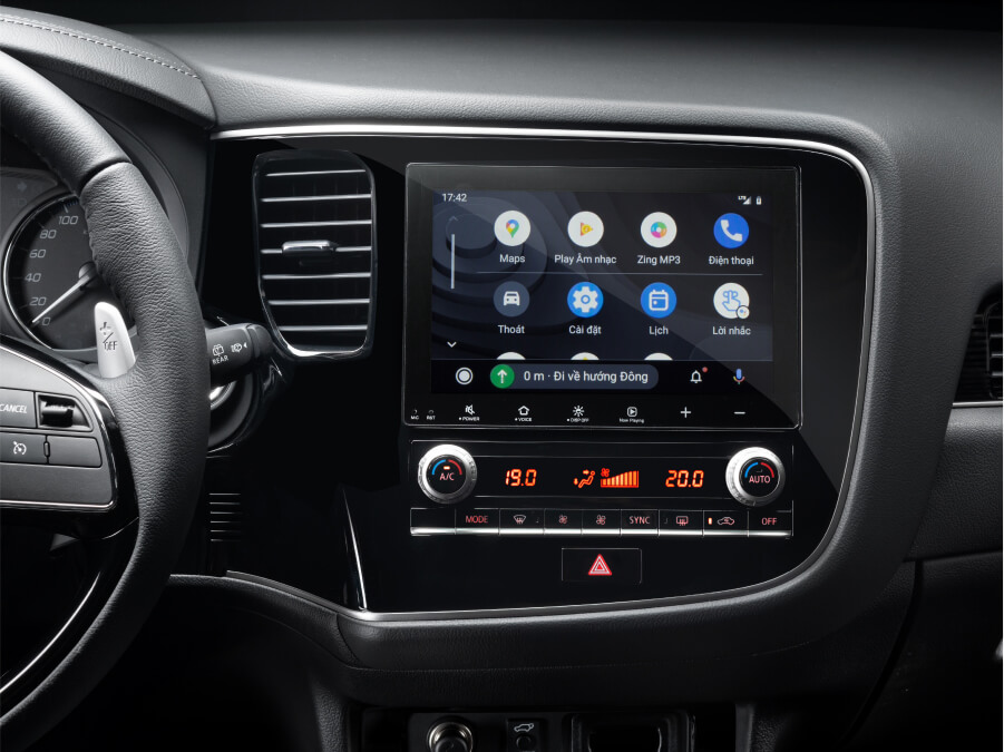 Outlander sở hữu màn hình cảm ứng kích thước 8 inch cho phép kết nối với hệ thống giải trí Android Auto và Apple CarPlay và được tích hợp camera lùi. (Hình ảnh có thể khác với thực tế)